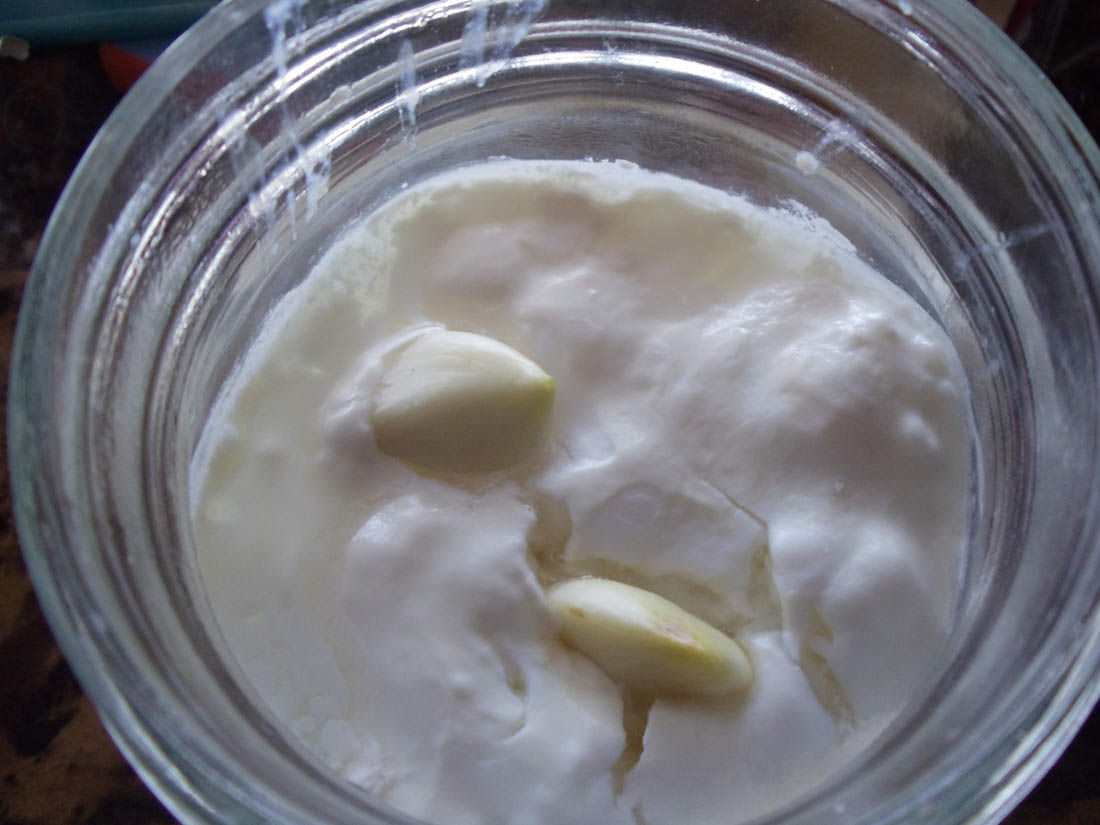 My good friend Jennifer gave me this idea. A few garlic cloves in your kefir to second ferment for a day, can give your kefir a great taste for dips.